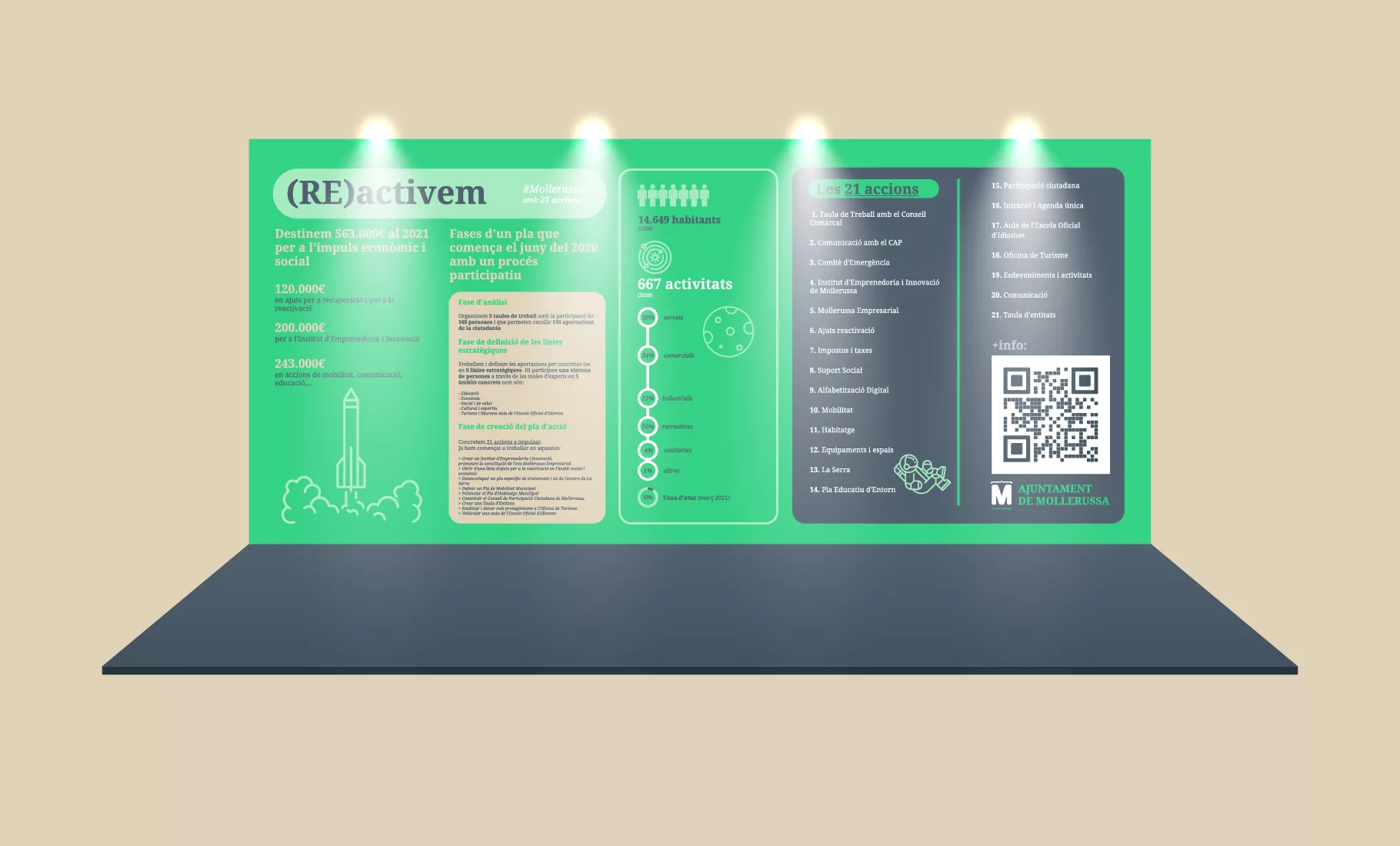 La propuesta presentada fue la de un estand abierto a modo de infografía, por un lado, y photocall interactivo en el otro, para así dinamizar la información ofrecida.